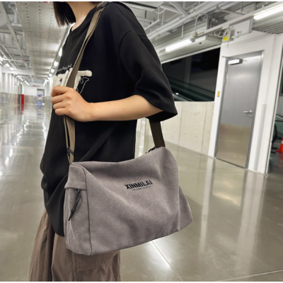 工装风帆布包男复古做旧休闲斜挎包大容量运动包通勤单肩包枕头包