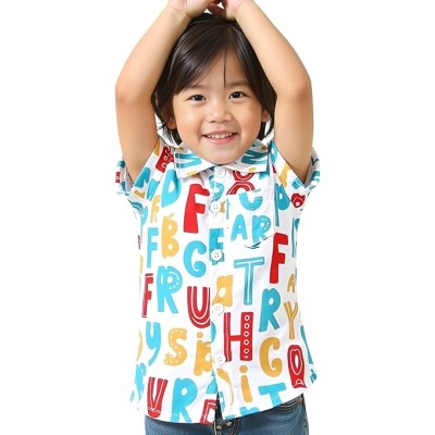 男女皆宜的儿童休闲印花衬衫 |男孩和女孩短袖涤纶衬衫 |时尚舒适的儿童夏季服装