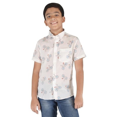 男孩夏季棉质衬衫半袖,童周期印花衬衫