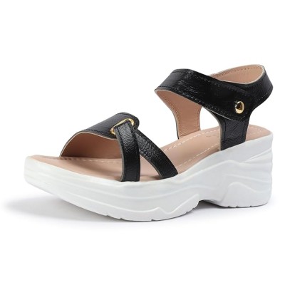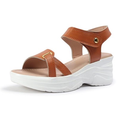 女式休闲奶油坡跟凉鞋