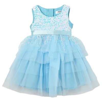 女婴棉质 A 字裙膝盖以下连衣裙