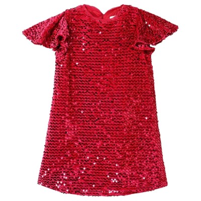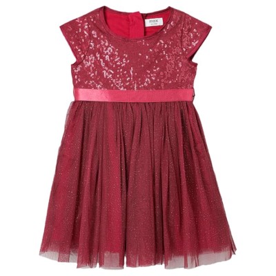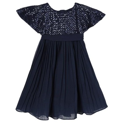 女孩版型和喇叭形涤纶混纺经典中长连衣裙