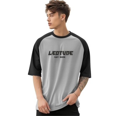 半袖棉混纺字体印花圆领落肩字体印花超大号男士T恤