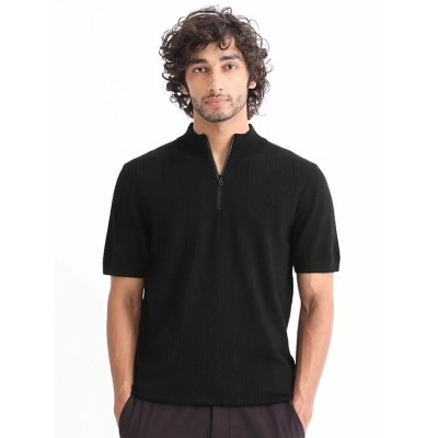 男士 Polo 拉链领领常规版型哑光半袖拼色多色 T 恤组合(颜色:黑色)
