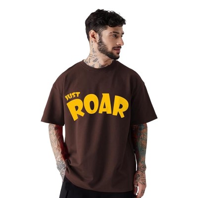 男士棉质超大版型休闲印花圆领,超大长款落肩波西米亚风T恤