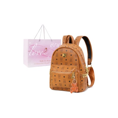 MINLUBAOLUO珉璐保罗 时尚通勤满印小熊老花高级感大容量 PU+PVC 双肩包 大号 女款 棕色/米白色/粉色