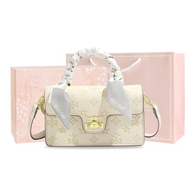 MISS GAIL 香港品牌 潮流大牌蝴蝶结丝巾印花小方包包女生百搭少女通勤包女朋友高颜值小众品牌 人造革 单肩斜挎手提包 常规 女款
