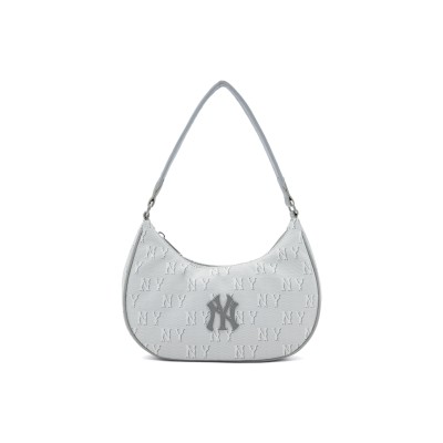 MLB 时尚休闲通勤复古老花拉链开合手提腋下包 涤纶 单肩包 常规 男女同款情侣款 深灰色