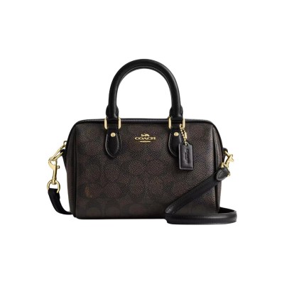 COACH蔻驰 Rowan 18 经典老花印花拉链开合 涂层帆布 单肩斜挎手提包 小号 女款 棕色
